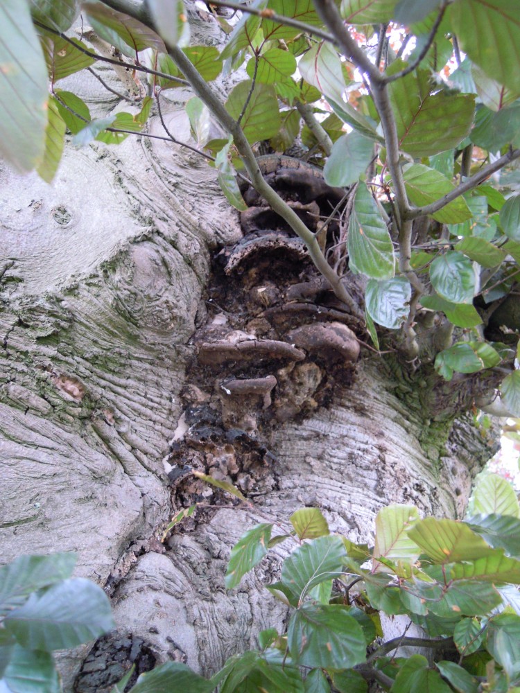 Voor de verkeersveiligheid en het behoud van de beuken werd de boom verwijderd.